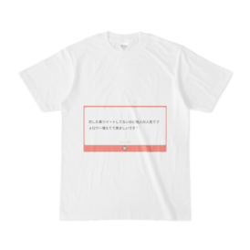 Tシャツ - XL - 白この商品はpixivFACTORYで作られた商品です。サンプル画像は完成イメージのため、実物と異なる場合があります。 激アツまろのTシャツです! 文面 【対した事ツイートしてないのに他人の人気でフォロワー増えてて羨ましいです!】