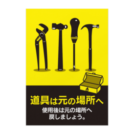 ポスター - B2この商品はpixivFACTORYで作られた商品です。 サンプル画像は完成イメージのため、実物と異なる場合があります。 【内容】 「道具は元の場所へ」ポスターです。[物販商品(pixivFACTORYから発送)] 【メリット】 さらなる安全管理や効率を追求したいとお考えの工場、現場事務所などでご利用いただけます。 道具類の整頓ルールを徹底することにより、作業効率のアップやミスの防止につなげます。 ◆制作: 富士フイルムビジネスイノベーションジャパン(株)オリジナルツールplus制作チーム ◆公式ホームページ: https://www.fujifilm.com/fb/company/fbj
