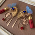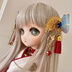 【師走の髪飾り】 金色×金魚 ドールサイズの髪飾りを制作いたしました。 髪飾りは両側のウィッグへ、クリップで留めて頂ける様に制作しております。 お品物は、髪飾りのみです。お人形が写っているお写真は着用例(MDD)となりますので、サイズ感等をご参考ください。(ドール本体や、撮影用に使用している小物類は付属致しませんのでご注意ください) ◆使用素材等◆ 金属、シフォンパーツ、ガラスやタッセル、プラスチック等色々です。難黄変のレジンや、ニカン・丸カン等で各パーツの接着を行っております。 金属・レジンアレルギーの方はご注意ください。 できるだけパーツが外れたりしないよう、ニカンを中心に使用し、マルカン使用部分で、外れる不安がある箇所に関してはレジンにて隙間をふさいでおりますが、華奢なパーツ類も使用しておりますため、優しくお取り扱いいただけますようお願い致します。 金属パーツに関してですが、海外製品も使用しており、なるべく綺麗なものを選んで使用しておりますが、どうしても元々少々のスレや小傷などがあるパーツもございます。お気になされる方はご購入をご遠慮くださいますようお願い致します。 ◆ドール着用時のご注意◆ 必ず、ウィッグの上からのご使用をお願い致します。金属パーツを使用しています為、お顔にパーツが当たらない様装着してあげて下さい。 色移りは湿度や条件によって変わってきますので、長時間の装着したまま・・は推奨できません。様子をご覧いただきご使用をお願い致します。 (念の為、特にタッセル部分はお顔など本体に直接触れない様ににご使用下さい) 大変すみませんが、色移りや、パーツこすりでのメイクの削れ等での責任は当方では負えませんのでご了承ください。 ◆その他◆ 丁寧に一点・一点手作り致しましたが、手作業です。プロの作品のようなクオリティーはございませんので、ハンドメイドへのご理解をいただき、雰囲気を気に入って下さった方のご購入をお待ちしております。 ◆発送に関しまして◆ 少々お待たせいたしますが、都合により発送まで最大で、一週間(土日祝を除く)程度頂戴しますが、ご了承ください。