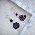 六角形ストラップ柄 ハートイヤリング サブカル 地雷系 プラバン レジン メンヘラ パープル 491