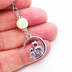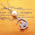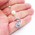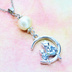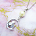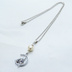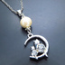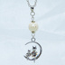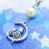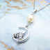 猫の親子が三日月のうえで寄り添うモチーフのネックレス シルバーカラー コットンパール ラインストーン