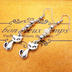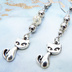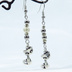 可愛い猫モチーフとメタルビーズのシルバーカラーのアシンメトリーピアス シンプル スリム