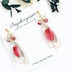 一輪挿しをイメージしたお花が可愛い、新シリーズです🌷・:*+. クリアレジンに一輪のみポンっと入れる事により、お花がより際立ちました! トップはビーズやスワロフスキー、クリアのお花パーツなどで装飾して、シンプルだけど可愛く高見え!を目指しました^^* *こちらはレジン作品となります。小さな気泡が入っておりますので、気になる方はご注意ください。ひとつひとつ手作りなので、写真と同じ個体が届く保証はございません。ご了承頂ける場合のみご注文をお願い致します。また、保存の際は直射日光をお避けください。 ・サイズ 約4.1cm ・以下の金具に対応(指定なしの場合、金属ピアスとなります) 金属ピアス 金属フックピアス 金属イヤリング 樹脂ピアス 樹脂フックピアス 樹脂イヤリング(お勧めしません) ※変更希望の場合、お手数お掛け致しますが、ご注文後すぐにメッセージにてご指定下さいますようお願い致します。 ※金具にビジューの付いている作品は、金具を変更するとビジューが無くなる、または変形する(小さくなる等)場合がございますのでご注意くださいませ。 ・定形外郵便(全国一律120円)での発送になる為、到着まで1週間程掛かる場合がございます。 【⚠️追跡・補償サービスはございません】 発送通知から5日が経過しても到着しない場合、郵便事故発生の可能性がありますので、ご連絡下さいますようお願い致します。郵便調査の依頼を致します。(事故原因が分かるかもしれないだけで、補償はされませんのでご了承ください。) ※追跡可能が良い、補償付が良いなど、発送方法変更希望の方は、郵便局のサービス内でしたらご相談に乗りますので、メッセージをお送りください。 ・ハンドメイド作品となっております。既製品のような仕上がり・強度はございませんので、ご理解頂ける方のみご購入くださいますよう、お願い申し上げます。 その他ご質問がありましたら、お気軽にどうぞ!