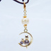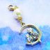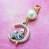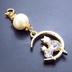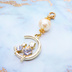 マスクチャーム 猫の親子が三日月で寄添うゴールドカラーのモチーフとコットンパールのチャーム ラインストーン キーホルダー