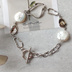 淡水コインパールをアクセントに、槌目シルバーパーツをランダムに配置しています。 ぐにゃっとしたパーツのデザインと、金属の質感のアンバランスをお楽しみください。 装着は流行りのマンテルで。 マンテル自体がブレスチャームのひとつになって、とても華やかな1本になっています。 全長19.5cm ■なるべく近いお色で撮影しておりますが、ご利用の端末の画面表示により実際のお色と異なる場合がございます。 ■丁寧に作成しておりますが、手作りの品となります。 デリケートな素材を使用しておりますので、お取り扱いにはご注意ください。 ■他アプリ、店舗でも販売しておりますため、 途中で出品を取り下げる場合があります。ご了承ください。