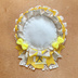 缶バッジロゼット イエローカラー ダブルリボン レース パール