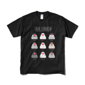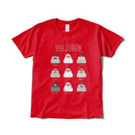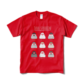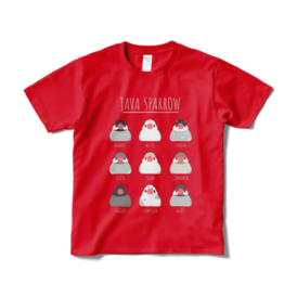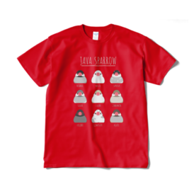 レッド【XL】どどーん!と濃色登場! 桜〜アゲイトまで揃い踏み どどーん!と大きくたくさんの文鳥たちが描かれた 部屋着に、イベントに、壁に飾ってもかわいい文鳥Tシャツ ▼シャツの色は3カラー▼ ブラック (しろふち) / ネイビー (しろふち) / レッド (くろふち) ※文鳥の周りのラインの色が違います。文字は全て白色になります。 4枚目…くろふちイメージ 5枚目…しろふちイメージ ▼豊富なサイズ展開▼ S / M / L / XL ▼白色はこちら▼ https://omame012.booth.pm/items/1026772 ▼小さめの柄はこちら▼ https://omame012.booth.pm/items/3538540 この商品はpixivFACTORYで作られた商品です。サンプル画像は完成イメージのため、実物と異なる場合があります。