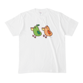 Tシャツ - XL - 白ピーナッツペリカンの「ピーさん」と洋ナシペリカンの「ヨーさん」です♪ 双子のペリカンです…!? この商品はpixivFACTORYで作られた商品です。サンプル画像は完成イメージのため、実物と異なる場合があります。
