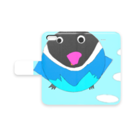 インコ手帳型iPhoneケースAブルーボタンインコ