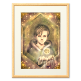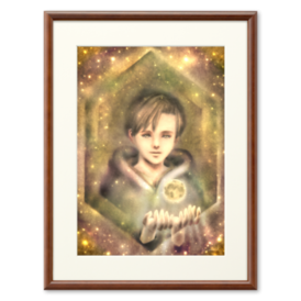複製画(プリモアート) - A3 額縁の色・ブラウン【タイトル・制作年】 月の子 / 2021年 ・サイズはA4またはA3からお選びください。 ・額縁の色はナチュラル(薄茶)またはブラウンからお選びください。 【プリモアートとは】 インクジェット10色以上で出力した複製画です。 高解像度で入力したデジタルデータを、複製画専用のカラーテーブルを使用してデジタル処理し、繊細な階調表現を可能にしています。 【サイズ】 A4 額サイズ(裏版寸法) 287 x 387mm A3 額サイズ(裏版寸法) 423 x 545mm ※額縁の表面にはアクリル板が付属しています。 この商品はpixivFACTORYで作られた商品です。サンプル画像は完成イメージのため、実物と異なる場合があります。