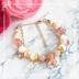 ご覧頂きありがとうございます! こちらは刀剣乱舞に登場する亀甲貞宗をイメージして作成したハンドメイドの天然石ブレスレットです。 柔らかく淡い色合いのオレンジムーンストーンやローズクォーツを、優しいミルキーなホワイトマザーオブパールで包み込む様に作成しました。 オレンジムーンストーンには角度によって綺麗なシラーが見られます。 ☆サイズ 内径(内周)約14.5cm前後からアジャスターで調節可能です。(アジャスターの長さは約6cmあります。) 【使用した石/石の言い伝え】 オレンジムーンストーン 8mm (6月の誕生石/明るさをもたらす、自己肯定感を高める、直感力を高める、陰陽のバランスを保つ/月・太陽・火星の象徴) マザーオブパール 8mm&6mm&4mm (家族愛、優しさ、子宝) チェリークォーツ 8mm (※人工石/恋愛運アップ) ローズクォーツ 6mm (優しさと思いやり、恋愛運、愛と美を守護する) バロック型淡水パール (内面の美、健康、癒し、魔除け) その他一部にチェコガラスビーズ、メタルパーツ等を使用しております。通し糸は丈夫なナイロンコートワイヤーです。 (※金属アレルギーの方や、使用素材がお肌に合わない方はご注意下さい。) ◆一部の金属パーツには変色防止の専用コーティングを施しております。 (※必ず変色を防ぐというものではございませんので予めご了承下さい。) ◆発送は定形外の特定記録郵便(簡易的な追跡あり)を予定しております。 お急ぎの方や、より良い追跡・補償のある発送方法をご希望の方はお手数ですが必ず購入前にご相談下さいm(_ _)m 丁寧にお作りしておりますが、材質上強い衝撃や汗・水分・皮脂等が付いたままの放置は苦手です。ご使用後は柔らかい布で優しく拭いてお手入れして頂く事をおすすめ致します。 使用している素材にはお色味の濃淡や小さな傷、凹み、内包物等含まれる場合がございます。素材の特徴としてご理解を賜われますと幸いです。 その他にも何か気になる点がございましたらどうぞお気軽にご質問下さい!