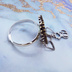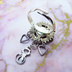 スチームパンク風 歯車と猫のコンパクトなフリーサイズリング スワロフスキー アンティークシルバー