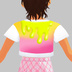 1. In Vroid Studio, go to your model's outfit, then to the tops. 2. Select custom, then add a mini tshirt. 3. Click on 'Edit Texture'. 4. In the texture editing panel, right-click on 'Default Design' and select import. 5. Load the 'funky acid crop top' PNG file. 6. And voilà, you have it! I recommend using light pink for the shade colour, it looks better. To have the same shape as in the pictures, put the 'sleeve (narrower)' parameter at 50, 'hem lenght' at 50 and 'waist width (wider)' at 60.