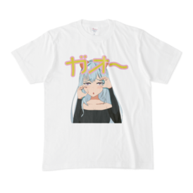 Tシャツ - XL - 白ガオ〜とポーズするやる気のない女の子♪ この商品はpixivFACTORYで作られた商品です。サンプル画像は完成イメージのため、実物と異なる場合があります。