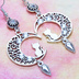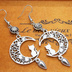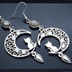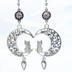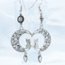 猫とアラベスク模様のある三日月のピアス ラインストーン シルエットモチーフ アンティークシルバー