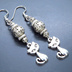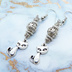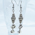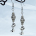 アンティークシルバーの猫とビーズを組み合わせたピアス イヤリング