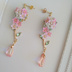 ご覧いただきましてありがとうございます。 樹脂粘土製のパーツとリーフコネクター、チャームを使用しています。 ピンクの桜ブーケと各種パーツ、ゴールドの金具の色味が調和した、とてもきれいなピアスです。 満開の桜と、ひらひら舞い落ちる花びらをイメージしてデザインしました。 全長約6cmとちょっと長めなので、華やかさもありますよ! イヤリング、樹脂ノンホールピアス、クリップ式イヤリング(サージカルステンレス)への変更も承ります。 ※注意※ ☆お花のパーツは樹脂粘土でできています。強い力や水濡れに弱いので、充分ご注意くださいませ。 ☆定形外郵便でのお届けのみとなります。 【Size】 ・ブーケ:約2.8cm×1.7cm ・リーフコネクター:2.5cm×1.5cm ・桜の花びらチャーム:15mm×8mm×7mm