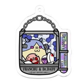 「Dr.ダディのモンスター研究所」より、フランチュー&Dr.ダディのアクリルキーホルダー 鉄材風のフレームに、不思議な液体の入った試験管 ぞんびっとの背後には、構造式がデザインとして入っています ヨーロッパの吊り看板をイメージした、可愛くて個性的なアクリルキーホルダーです 【商品について】 *この商品はpixivFACTORYで作られた商品です。サンプル画像は完成イメージのため、色味が実物と異なる場合があります。