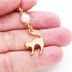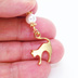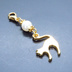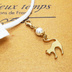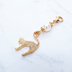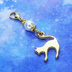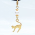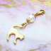 マスクチャーム マットゴールドの跳ね猫モチーフとスワロフスキーパール(クリスタルホワイト)のチャーム キーホルダー