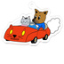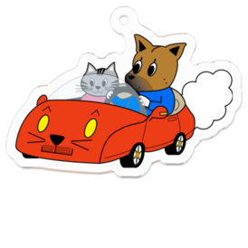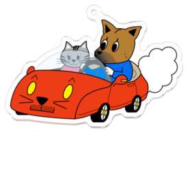 ドライブする雑種犬と猫ちゃんのアクリルキーホルダー