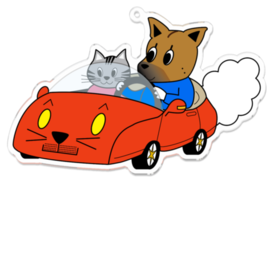 アクリルキーホルダー - 100 x 100 (mm)日本でよく見かける雑種犬と、トラ猫ちゃんが一緒にドライブしています。 この商品はpixivFACTORYで作られた商品です。サンプル画像は完成イメージのため、実物と異なる場合があります。