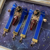 【リボン髪飾り】 Gothic × Electric Blue ドールサイズの髪飾りを制作いたしました。 髪飾りは両側のウィッグへ、クリップで留めて頂ける様に制作しております。 お品物は、髪飾りのみです。お人形が写っているお写真は着用例(MDD)となりますので、サイズ感等をご参考ください。(ドール本体や、撮影用に使用している小物類は付属致しませんのでご注意ください) ◆使用素材等◆ 金属、シフォンパーツ、ガラスやタッセル、プラスチック等色々です。難黄変のレジンや、ニカン・丸カン等で各パーツの接着を行っております。 金属・レジンアレルギーの方はご注意ください。 できるだけパーツが外れたりしないよう、ニカンを中心に使用し、マルカン使用部分で、外れる不安がある箇所に関してはレジンにて隙間をふさいでおりますが、華奢なパーツ類も使用しておりますため、優しくお取り扱いいただけますようお願い致します。 金属パーツに関してですが、海外製品も使用しており、なるべく綺麗なものを選んで使用しておりますが、どうしても元々少々のスレや小傷などがあるパーツもございます。お気になされる方はご購入をご遠慮くださいますようお願い致します。 ◆ドール着用時のご注意◆ 必ず、ウィッグの上からのご使用をお願い致します。金属パーツを使用しています為、お顔にパーツが当たらない様装着してあげて下さい。 色移りは湿度や条件によって変わってきますので、長時間の装着したまま・・は推奨できません。様子をご覧いただきご使用をお願い致します。 (念の為、特にタッセル部分はお顔など本体に直接触れない様ににご使用下さい) 大変すみませんが、色移りや、パーツこすりでのメイクの削れ等での責任は当方では負えませんのでご了承ください。 ◆その他◆ 丁寧に一点・一点手作り致しましたが、手作業です。プロの作品のようなクオリティーはございませんので、ハンドメイドへのご理解をいただき、雰囲気を気に入って下さった方のご購入をお待ちしております。 ◆発送に関しまして◆ 少々お待たせいたしますが、都合により発送まで最大で、一週間(土日祝を除く)程度頂戴しますが、ご了承ください。