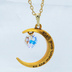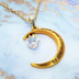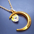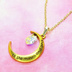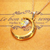 マットゴールド 三日月とハート型スワロフスキー・クリスタルを組み合わせたネックレス クリスタルオーロラ 長さ調整可