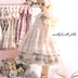 ・アンダードレス(青バラ柄) 薄手の綿プリント生地、リバーレース(エクリュ)を使用しています。 背中のスナップボタンにて着脱させてください。 重ね着する際に身頃がすっきりする様に裏地は付いていません。 アンダードレス1枚で着てもかわいいです。 左側の袖にオリジナルのタグプレートを付けています。 ・エプロンドレス(アイボリー) アイボリーの綿ローン、リバーレース(エクリュ)を使用しています。 背中のスナップボタンで着脱させてください。 身頃のみ裏地付き。 ウエストのリボンにタグプレートを付けています。 ・ヘッドドレス(アイボリー) アイボリーの綿ローン、チュールリボン、トーションレース(エクリュ)を使用しています。 レースリボンは首の前、うしろお好きな位置で結んでください。 片側のリボンにタグプレートを付けています。 ・アンダースカート(オフホワイト) 他のドレスセットでも使用できる様、アンダースカートはオフホワイトの生地を使用しています。 水通しできるものは一度水通ししてあります。 生地の端処理はロックミシンで、一部ピケを使用しています。