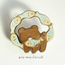 「木彫りのくま」をイメージして作ったブローチです。 眉間のしわがチャームポイント。 木を切り出して作ったモチーフに、一つずつ着色して作っています。 木材にはそれぞれ木目や色味の違いがあり、一つとして同じものがありません。 そんなあたたかみのある、木の風合いも楽しんで頂ければ幸いです。 また、木材のためとても軽量で、重さをあまり感じさせまん。 表面は食品衛生法にも適合したニスでコート、裏面も油性のニスでコートしております。 (お水は弾きますが、長時間水に濡れるような環境や、水場でのご使用は念のためお控えくださいませ。) 背面にはゴールドの回転ピンが付いております。 普通のブローチピンよりも外れにくく、安心してお使いになれます* 仕様------------------------------------ 縦4.3cm 横4.3cmほどです。厚みは5mmほど。 ご購入時の注意点----------------------------------- * ハンドメイド作品です * ひとつひとつ手作りのため、大きさや色などに個体差がございます。 又、傷や気泡、ゆがみなどが気になられる方は、トラブルを避けるためご購入をお控ください。 気になる事などがあればご購入前にご連絡くださいますようお願いします。 * 写真と色 * ご覧いただいているお写真と、実際の商品では少々色の違いがある場合がございます。 あらかじめご了承ください。