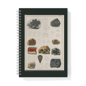 B5 ブラック鉱物コレクターズノート 鉱物標本、鉱物図鑑をイメージした作品です。 自分で鉱物を集める楽しさ、原石の美しさ、次はどんな石に出会えるだろうという期待を胸にペンを走らせる。そんなノートを作りたいという思いから生まれた作品です。