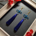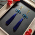 【和風】几帳結びとタッセルのピアス(イヤリング)(青)【チャイナ】【中華風】【和風】【着物】