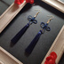几帳結びとタッセルのピアス(紺)【チャイナ】【和風】【中華風】【着物】