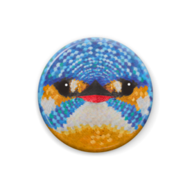 カワセミ、メス【まるい野鳥の顔缶バッチ】