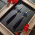 【ゴールドビーズ】几帳結びとタッセルのピアス(イヤリング)(紺)【和風】【中華風】【チャイナ】【着物】【和ゴス】