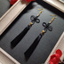 【ゴールドビーズ】几帳結びとタッセルのピアス(イヤリング)(黒)【中華風】【チャイナ】【和風】【着物】【和ゴス】