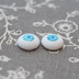 水彩タイプ(銀箔と透明釉薬使用) ふちどり線なし 直径・虹彩サイズは商品タイトル参照(直径/虹彩) ※0.5mm単位 計測部分によって0.5mm前後誤差あり カラー:ブルーグリーン系、瞳孔ダークブルー 中心に淡い青紫、外側にブルーグリーン 特記事項:瞳孔の上に淡い色の釉薬のかぶり/虹彩ふちのにじみ不均一 素材:銅板、ガラス(デザインにより銀箔や純銀線、銅線など使用) 共通のご説明は【商品について・諸注意事項】にまとめています。ご購入前にお読み下さい。 https://l-du-e.booth.pm/items/2993748