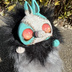 きぐるみを着た小さな小さなモンスター。夜な夜な現れては人間観察に勤しみます。 小さいけれどいつかは立派なモンスターになることを夢見て、『にんげんのじゃくてん』をさがしています。 ないとめあちゃん。 人間の見る怖い夢を見ては泣いてしまうナイトメア。 ちびっちゃうくらいなら怖い夢見せなきゃいいのにね。 本体は14cm程度、顔と手足はラドールプレミックスを使用。体はフェイクファーです。汚し加工をしています。 中に骨組みとしてコーティングしたワイヤーを入れているので、寝転んでしまう場合は少し調節してあげて下さい。 手足を曲げる時は優しく曲げてあげてください。 経年劣化や強く曲げることによって、ワイヤーが切れてしまう可能性があります。 コーティングスプレーをかけていますが、水濡れ厳禁でお願いいたします。