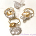 《サンプル》揺らぎ/リング【即納】 天然石に半分だけ金箔をほどこしたシリーズ。 クリスタルクォーツの透明感と金箔のリュクスな雰囲気がシンプルに同調するデザインです。 ※別ページに同デザインのイヤリングとピアスもあります。 ※別ページに原石アメジストの金箔シリーズもあります。 《お安い理由》 正式制作前のサンプルとして制作したもので、商品自体の不良品ではありません。 正式制作との違いは、金箔の種類とリング素材です。 こちらはサンプルのため、金箔が洋金(合金)となり、正式制作では金箔が24k(純金)となります。 同じくリング素材もこちらは合金、正式制作では14kgfもしくは18kgpになります。 《サイズ》 トップ:13~12 × 7~8mm 《金具》 合金 《ご注意》 ・取り外しの際は、他のものにぶつけないようにお取り扱いください。 《梱包》 小さなお箱にいれて配送用ダンボールにてお届けします。(参考画像4枚目) 《定期案内》 ・ご購入者さまご都合での返品及び返金はお受けしておりません。 ・ご購入から3ヶ月間の破損について、実費+送料のみでリペアを致します。ご連絡ください。 ・定形外での発送となり、他の配送方法はお受けしていません。 ・天然石を使用している関係上、樹脂製ノンホールピアスでのお作りはしておりません。レジンや他素材と比べると、天然石は若干の重さがあり、落下紛失の恐れがあると考えるためです。