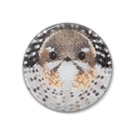 コゲラ、メス、足なし【フェルト風なまるい鳥の缶バッチ】