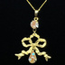 マリーアントワネットが好んだリボンモチーフのようなパーツに6mmラウンドと10x6mmのドロップ、二つのサフィレットストーンを合わせたネックレスです。 ストーンはカラーから、ヴィンテージサフィレット(サフィリーン)だと思われますが詳細は不明です。 ネックレスは全長50cmのスライドチェーンとなっております。お好きな長さに調節して使っていただけます。 <サフィレットとは> 1900年代初頭にチェコのヤブロネツ地方で制作されていた変色ガラスです。1929年の世界恐慌とそれに続く第二次世界大戦で製造法が失われました。その後、1950年代に西ドイツを中心に製造の再開が試みられました。 1900年代初頭にチェコで製作された物はアンティークサフィレット、1950年代以降に西ドイツで製作された物はヴィンテージサフィレット(=サフィリーン)と区別されます。 詳細はコレクターの方などが丁寧に解説してくださっているサイトやまとめなどがありますのでそちらをご参照いただければと思います。 ※メインのストーンはヴィンテージ品となります。表面に小傷などがございます。ご了承いただきますようお願いします。 ※いろいろな方に手に取っていただければと思っております。販売開始直後 (24時間程度目安)は、お一人様2〜3種類程度の購入にご協力いただければ幸いです。 ※一つずつ丁寧に作るよう心がけておりますが、繊細な作りとなっていますので、強い負荷などはかけないようにご注意ください。 ※できるだけ実物に近づけるように努力していますが、実物と写真の色味がちがって見える場合があるかと思います。気になる場合、購入前にお問い合わせいただければ幸いです。