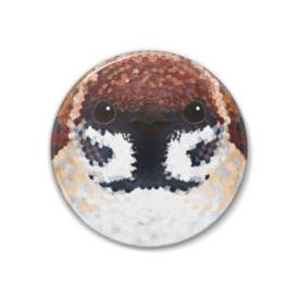 スズメ、足なし【野鳥のフェルト風缶バッチ】