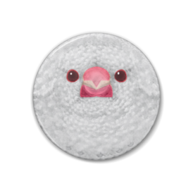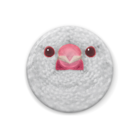 ブンチョウ、アルビノ、オス【鳥のフェルト風な缶バッチ】