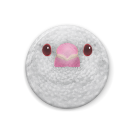 ブンチョウ、アルビノ、メス【鳥のフェルト風な缶バッチ】