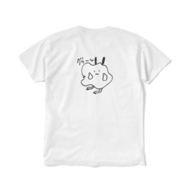 Tシャツ(短納期) - XL - ホワイト【こちらの商品は背面プリントです】 いきものが両手でサムズアップしながら雄叫びを上げるTシャツ。 この商品はpixivFACTORYで作られた商品です。サンプル画像は完成イメージのため、実物と異なる場合があります。