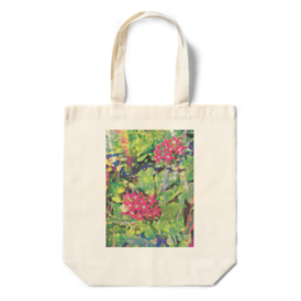 a-700 華 紅い花と虹色に光る蜘蛛の糸 Red flowers and rainbow-colored spider threads トートバッグ ☆応援企画商品☆