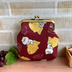 鯛焼きが美味しそうなおかえり園田君柄のがま口ポーチとポケットティッシュカバーのセットです。 内側はあんこをイメージしたブラウンです。 サニタリー用品位のサイズのものを入れるのにイイ感じの大きさです。 飴ちゃんも一袋位は余裕で入りそうです。 ちょっとした小物を入れるのに便利なサイズ感です。 ポケットティッシュは縦に入りますが、カバーをつけるとギリギリ入りらない位の微妙なサイズです。
