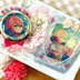 ハート型缶バッジロゼット カードケース ピンク ホワイト パール セット