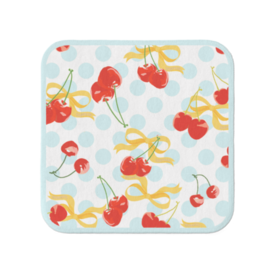 サクランボとリボンのミニハンカチです。 爽やかなサックスのパイピングがポイントです。 20センチ四方の乾きやすい生地でできたハンカチになります。 この商品はpixivFACTORYで作られた商品です。サンプル画像は完成イメージのため、実物と異なる場合があります。