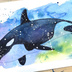 【水彩原画】虹の中のシャチ 158×227mm(025)