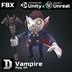 Supported Unity versions 2018.4.8 or higher Supported Unreal Engine Versions 4.21 or higher ◎Contents .unitypackage / .uproject / .fbx / .png Animation Preview https://youtu.be/NW58bURjvz0 Vampire (1696 vertex) 3 colors textures 2048x2048 png 6 basic animations Idle Move Attack_01 Attack_02 Damage Die